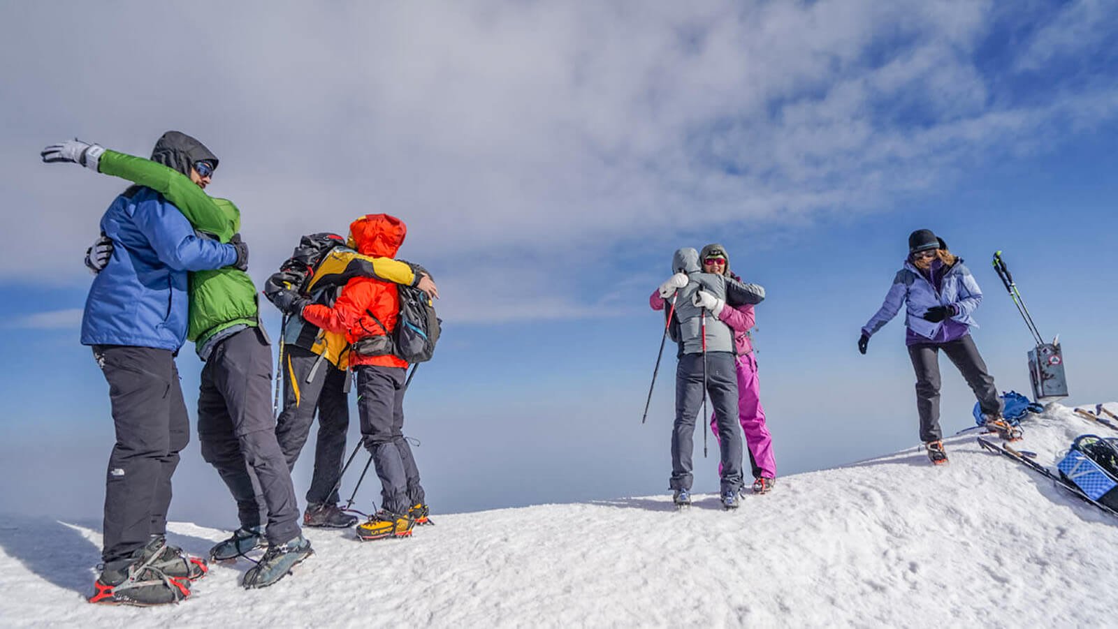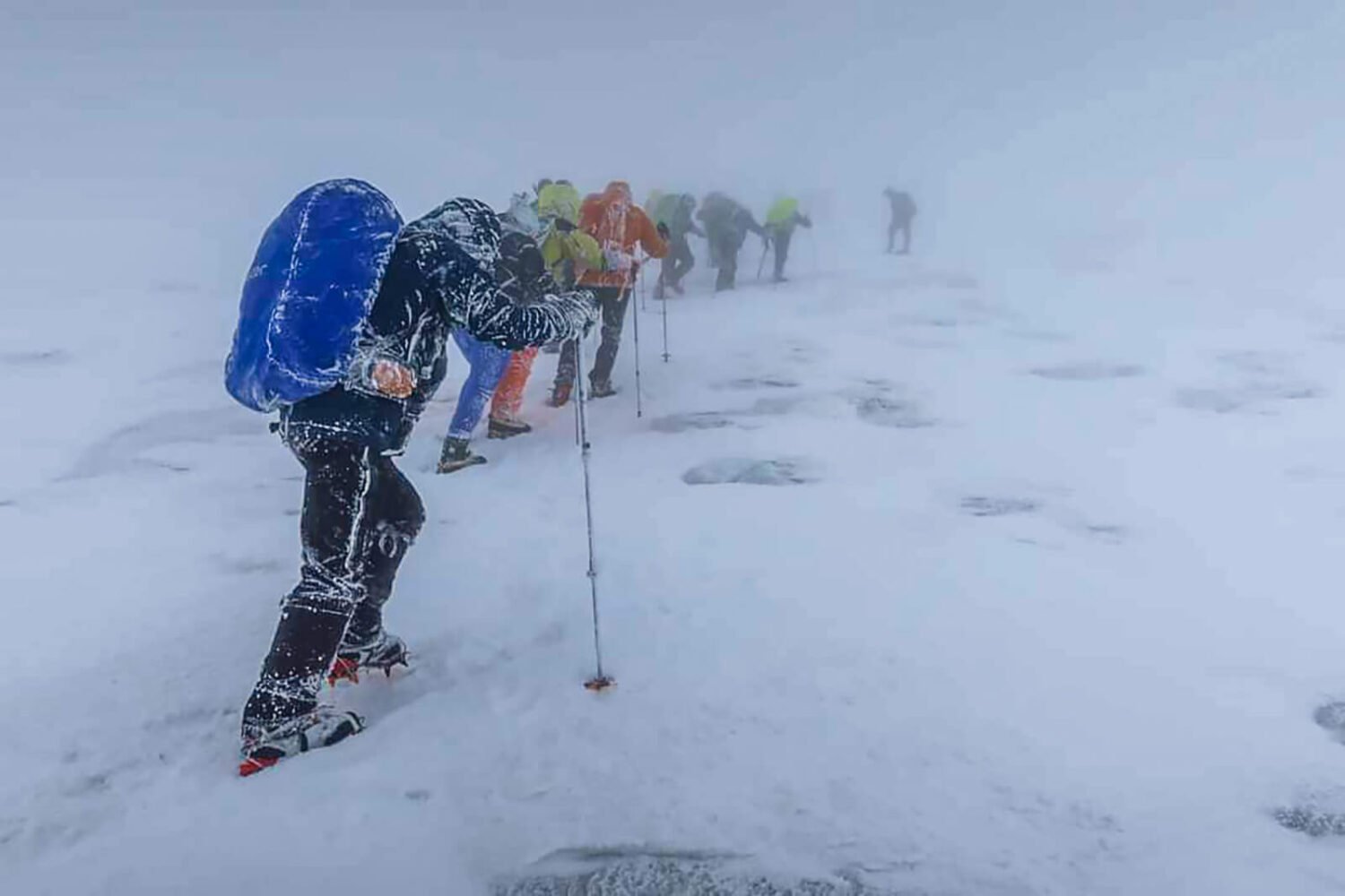 Reach the snow-covered summit and walk across the glacier at sunrise.